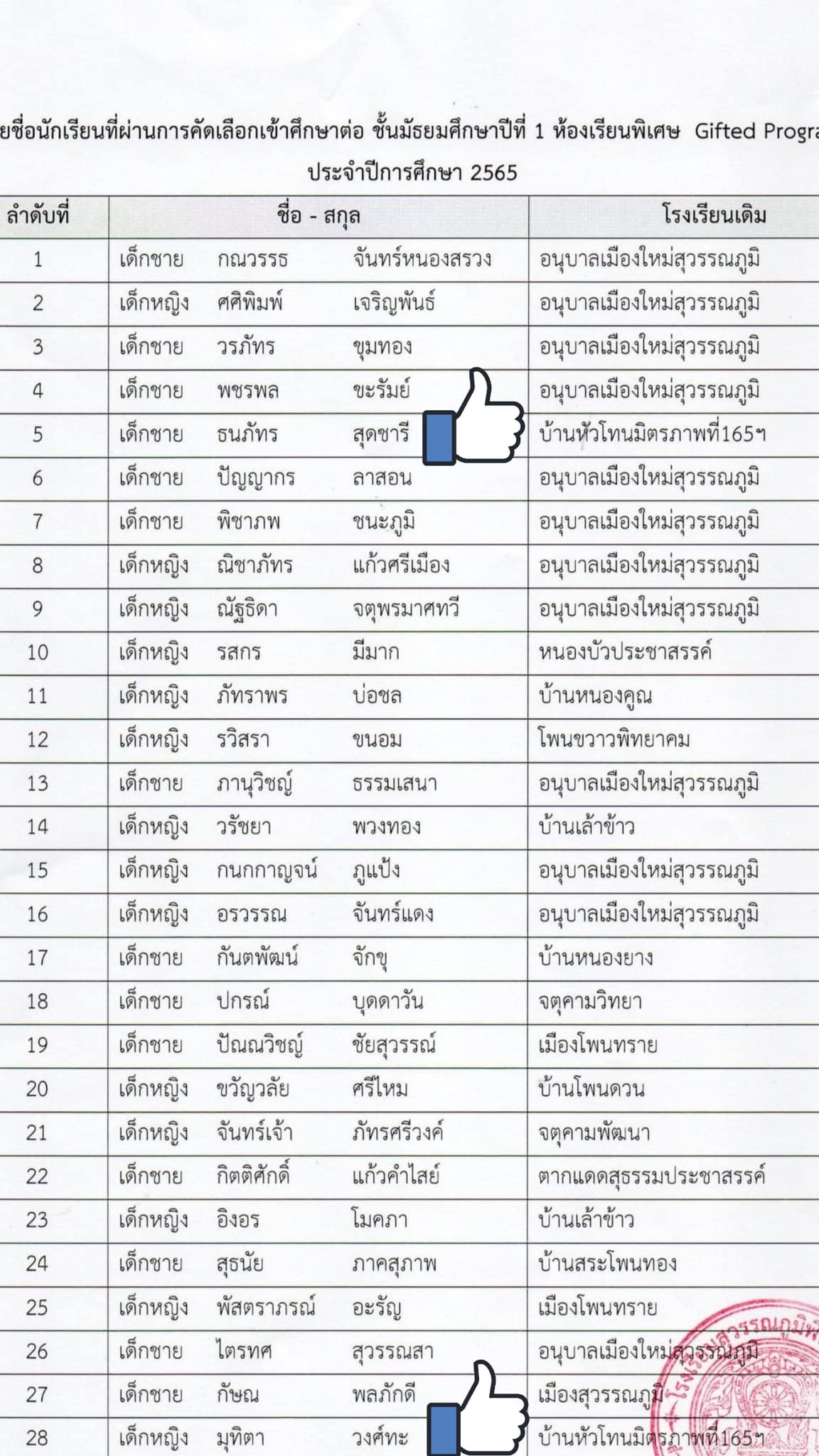 ยินดีกับพี่ป.6 ของเรา ห้องเรียน Gifted Program โรงเรียนสุวรรณภูมิพิทยไพศาล